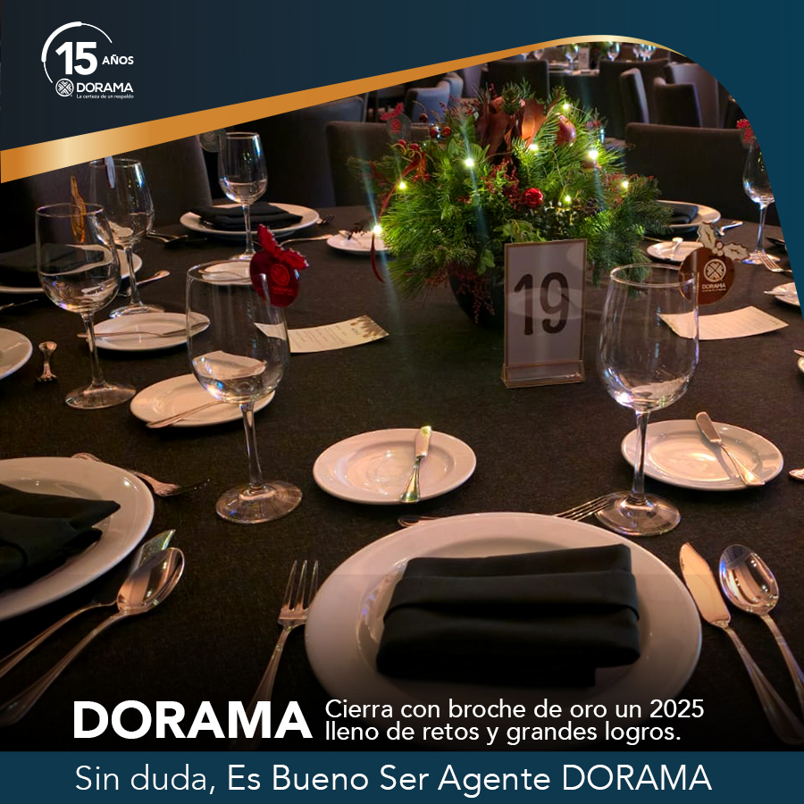 Fiesta de Fin de Año. Esta fiesta tradicional es esperada por nuestros Agentes DORAMA, quienes son invitados con su acompañante a degustar una exquisita cena en algún lugar exclusivo de la CDMX, donde nuestros anfitriones, nuestro Presidente Jorge Rodríguez Elorduy y nuestro, Director General, Flavio Dávila Gutiérrez, celebran en compañía de los asistentes el cierre del año con un espectáculo de alguna agrupación o famoso para amenizar la noche.